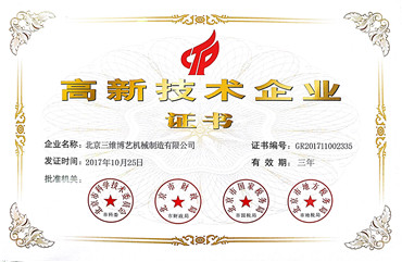 2017年10月公司獲得北京市高新技術企業(yè)證書